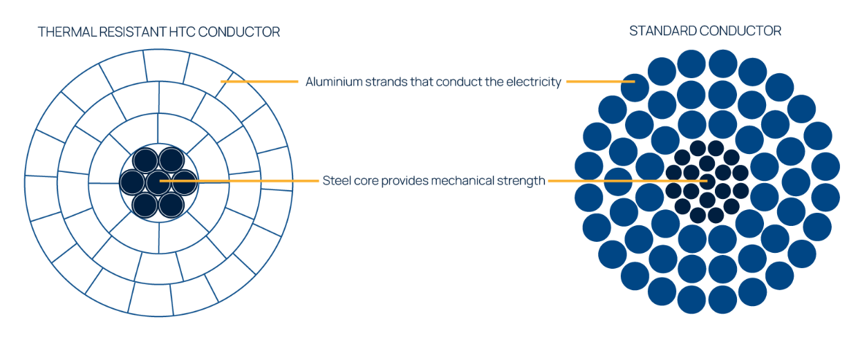Powerlink is using a specific type of HTC technology called ‘thermal resistant technology. Like traditional conductors, thermal resistant conductors also have a steel core. What sets them apart is the heat-resistant aluminium alloy that surrounds the core, enabling them to operate at high temperatures.