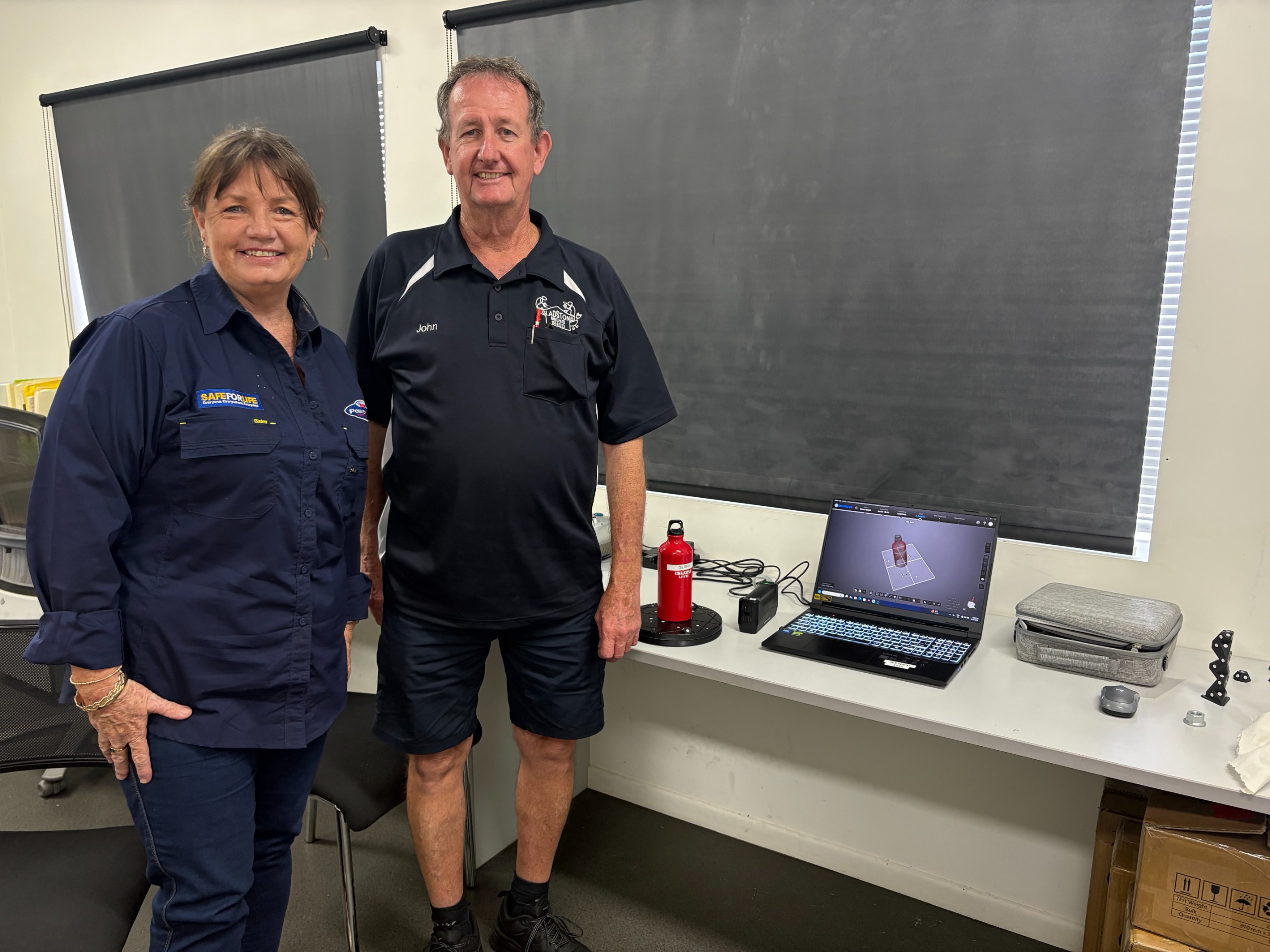Eliza is pictured below with Meg from Clarke Creek Campdraft, who received funding for a new commercial ice machine for their annual event and use throughout the year. Alison visited Gladstone Men’s Shed (pictured with John), who have invested in a scanner for their 3D printer to assist with repairs and printing replacement parts.